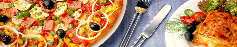 1 Lasagneblech + 1 Maccheroniblech +2 Pizzableche (35x50cm) +Salatplatten + 20 Pizzabrötchen mit Kräuterbutter + 2 Fl. ital. Wein 0,71 od. 2 Fl. Cola